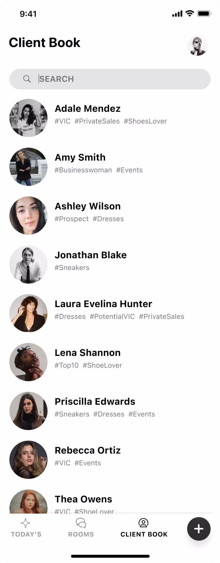 ALPHA enables you, the SA, to take care of all your clients, old and new, form your mobile phone: add private tags, create powerful outreach lists and segmentations — while keep everything in sync with your store and brand main CRM.